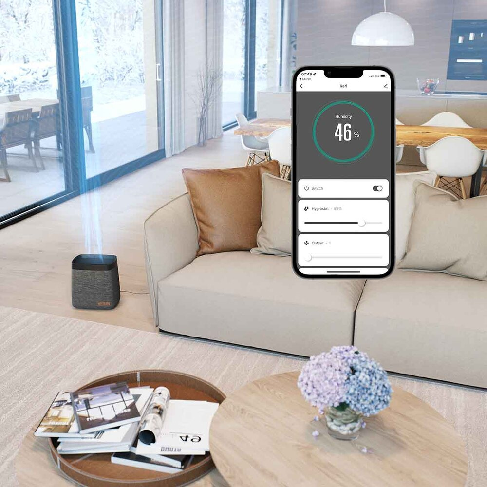 A Stadler Form mobilalkalmazással bárhol és bármikor vezérelheti a Karl párásító minden funkcióját, és nyomon követheti otthona aktuális páratartalmát. Az alkalmazáson keresztül egyetlen kattintással beállíthatja a kívánt páratartalmat, az időzítőt, az automatikus üzemmódot vagy a gyermekzárat.