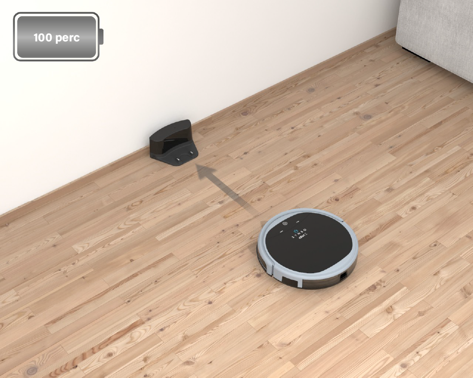 Amikor az akkumulátor lemerült, vagy vége a tisztításnak, magától elmegy a töltőállomásra. A robotporszívó feltöltése csak 100 percet vesz igénybe.