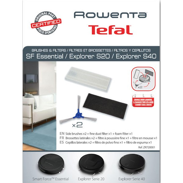 Csere finom porszűrő, szivacsszűrő és két oldalkefe Rowenta robotporszívóhoz. A készlet a 40-es és 20-as sorozatú, valamint a Smart Force Essential modellekhez alkalmas. A szűrők ajánlott cseréje körülbelül 4-6 hónap után, az oldalkefék ajánlott cseréje pedig 6-12 hónap után ajánlott, attól függően, hogy milyen gyakran és milyen felületen használják a porszívót.