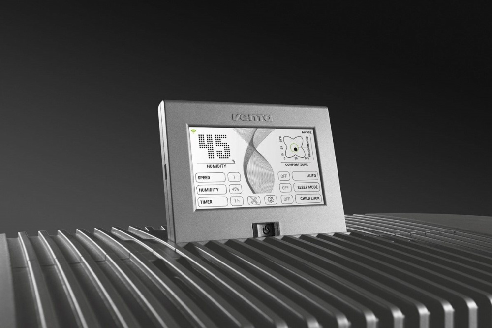 A Venta vezérlése interaktív érintőképernyőn keresztül történik nagyon intuitív. Speciális érzékelők mérik, ellenőrzik és szabályozzák a helyiség páratartalmát. A kijelző 8 nyelven állítható be, és mutatja a tisztítási időt, a tartály és a higiéniai tárcsa állapotát.