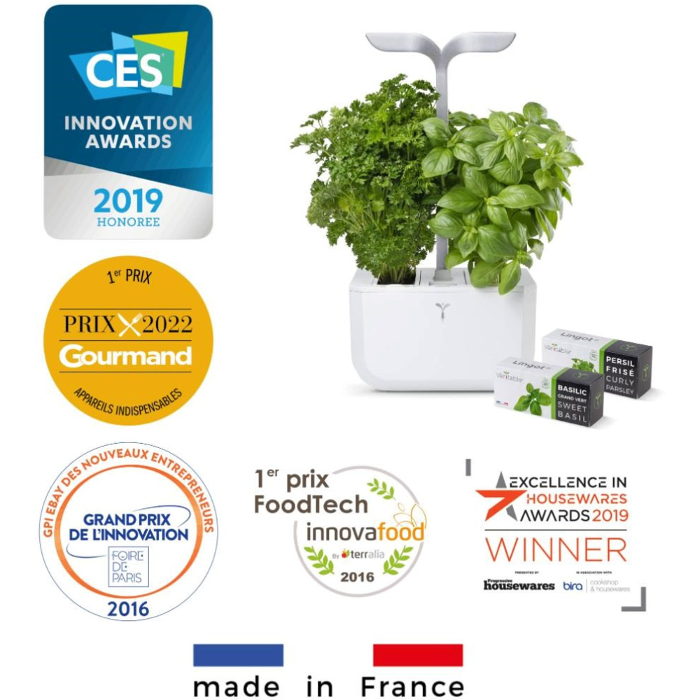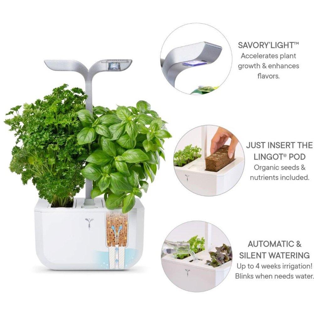 Az Exky Classic intelligens kert lehetővé teszi, hogy egész évben kényelmesen termeszthessen friss fűszernövényeket, zöldségeket, gyümölcsöket és virágokat beltérben. Egyesíti a francia kézművességet a modern technológiával a zökkenőmentes kertészkedés érdekében. Az automata rendszer az Ön beavatkozása nélkül gondoskodik a megfelelő mennyiségű vízről és fényről, így ideális az elfoglalt emberek számára.