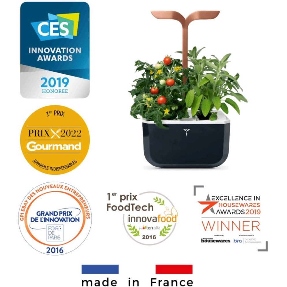 Az Exky Smart Garden lehetővé teszi, hogy egész évben friss fűszernövényeket, zöldségeket, gyümölcsöket és virágokat termeljen minimális erőfeszítéssel. A kert figyeli a környezeti fény esetleges gyulladását, és ennek megfelelően szabályozza saját égését, megvédve a növényeket az égéstől. Ezért alkalmas közvetlen és közvetett napfénnyel megvilágított helyiségekbe, valamint sötét helyiségekbe is. Egyesíti a francia kézművességet a modern technológiával.