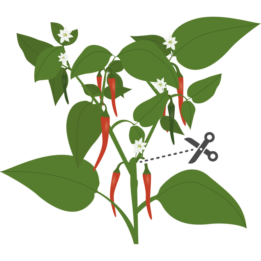 Minden mag a saját ütemében csírázik. A paprika csírázása lassú és szeszélyes. A 7-15 nap elteltével 3-5 lyukból fiatal növények fejlődnek ki. A szár ezután kitágul és megkeményedik, hogy chilipalántát képezzen.