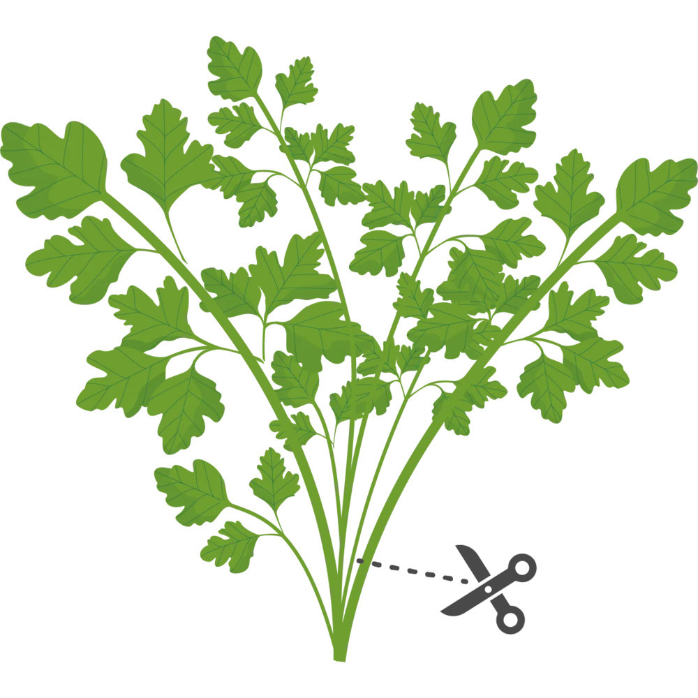 A Mitsuba petrezselyem évelő növény, amely egész évben leveleket hoz. A leveleket a növény tövéről szedheti le ollóval vagy óvatosan vágva, hogy ne sértse meg a fő szárat. A friss leveleket akkor lehet betakarítani, ha a növény kellően megnőtt, általában akkor, amikor a levelek már nagyok és jól formálódtak.