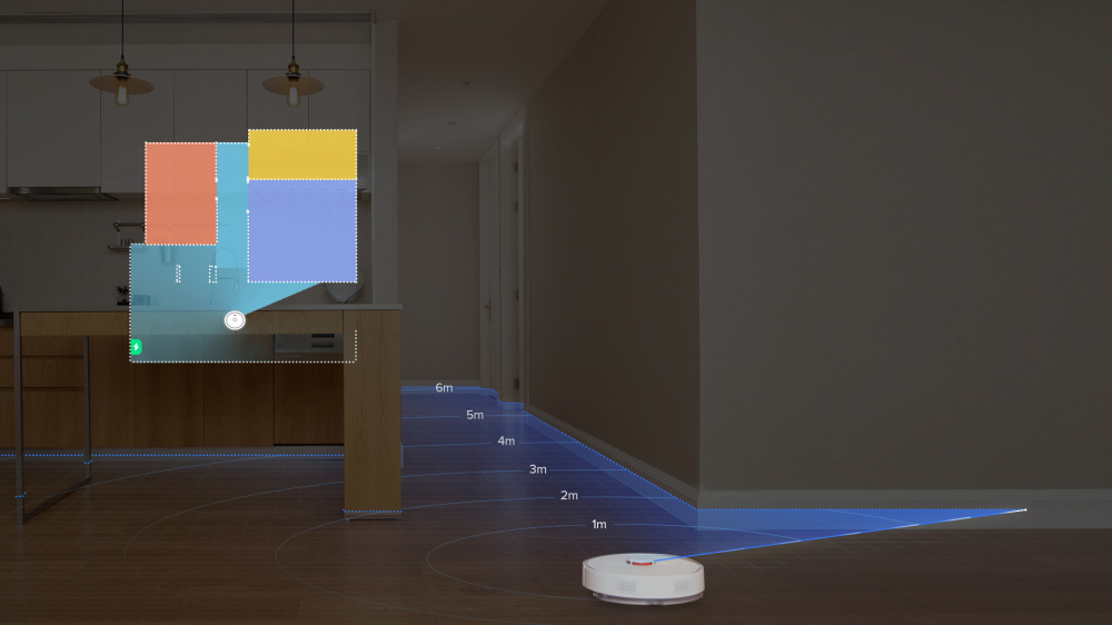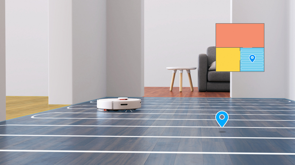 Egyidejű lokalizációs és térképezési algoritmust (SLAM) használ a NASA is a Marson. A Google is ezt használja a söfőr nélküli autóiban. A lézeres távolságmérő érzékelő, giroszkóp, sebességmérő és gyorsulásmérő alapján szerzett adatokból az algoritmus térképet készít a helyiségről. A porszívó ismeri a pontos helyzetét a térképen és biztonságosan betervezi a porszívózás útvonalát.